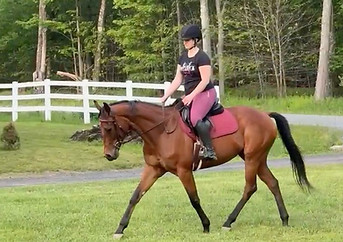 Kizzie is an easy snaffle ride, currently being ridden and shown in a loose ring snaffle. She is the kind of horse that will maintain whatever pace you set. No buck, rear or bolt. Kizzie hacks on/off property alone or in a group. I currently do not have an arena on my property, so she is ridden off property frequently throughout the week. When she isn’t being trailered off property, I ride her in one of my grass fields or down the road. Kizzie loads and trailers great, and ties to the side of my trailer. Kizzie is the same ride whether she is in 5-6 days of work or a couple times a week.